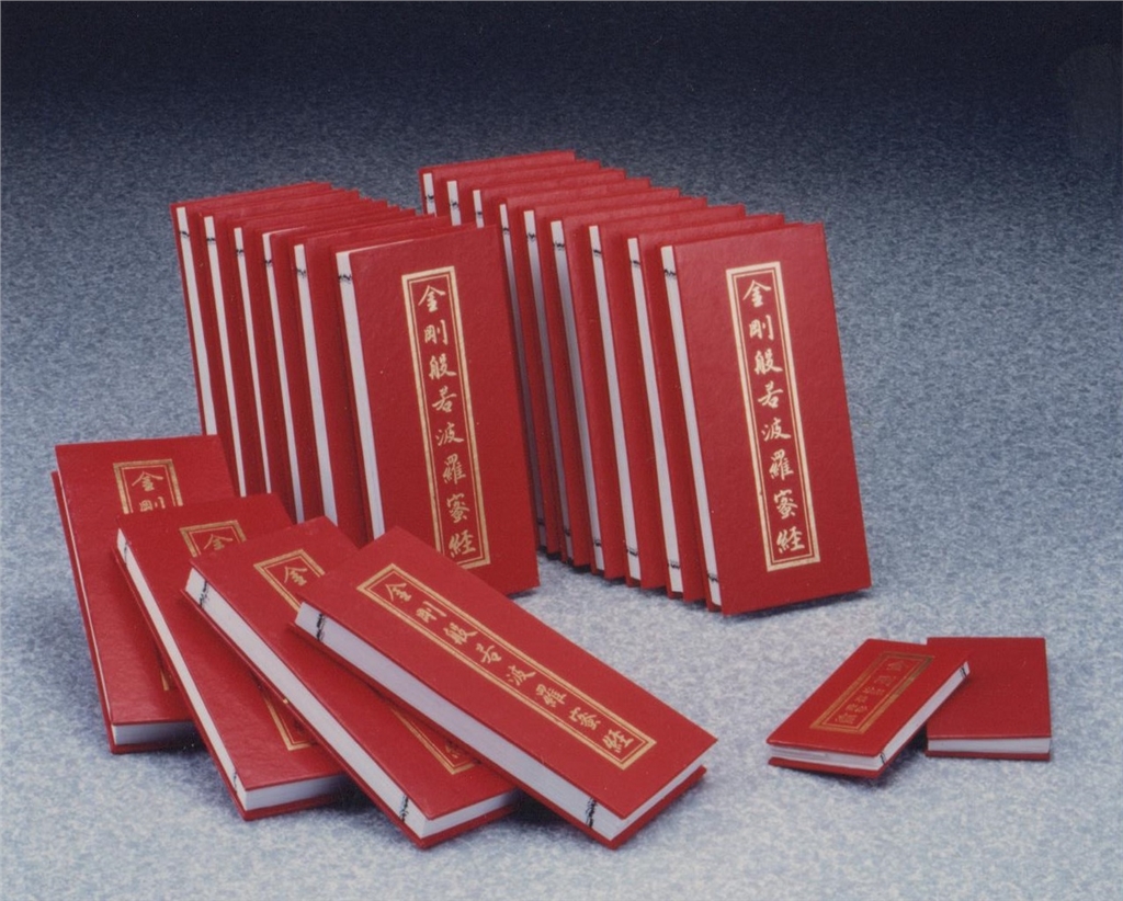 「金剛般若波羅蜜經」中本精裝課誦本,長21公分 、寬9公分,紅皮硬殼拉頁本,是一部印贈結緣、自修精進的寶典。助印一本僅收工本費50元。如蒙發心共襄盛舉,不論助印數量多少均為歡迎,本堂在此僅代表受益的十方大德致上虔誠的謝意,阿彌陀佛、功德無量!